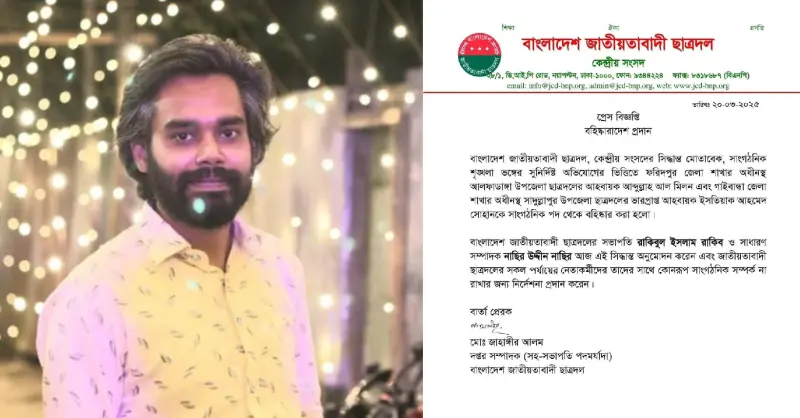 ধর্ষণচেষ্টা মামলায় গ্রেপ্তার হওয়া ছাত্রদলের আহবায়ককে বহিষ্কার