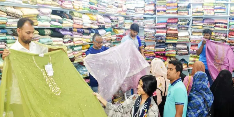 সরেজমিনে যশোর শহরের বিভিন্ন বাজার ঘুরে দেখা গেছে, এবার পাকিস্তানি থ্রি পিসের দখলে বাজার। মেয়েদের পছন্দ ও বিক্রির শীর্ষে রয়েছে পাকিস্তানি তাওয়াক্কল থ্রি-পিস। পাশাপাশি দেশি সুতি কাপড়গুলোও বিক্রি বেশ ভালো। বিক্রির দিক দিয়ে পাকিস্তানি তাওয়াক্কল, নুর, বিন সাইদ ভালোই বাজার ধরেছে। পাশাপাশি গাউন ও গরমকালে সুতি কাপড়ে আরাম বেশি বলে দেশীয় সুতি থ্রিপিস পছন্দ করছে ক্রেতারা।