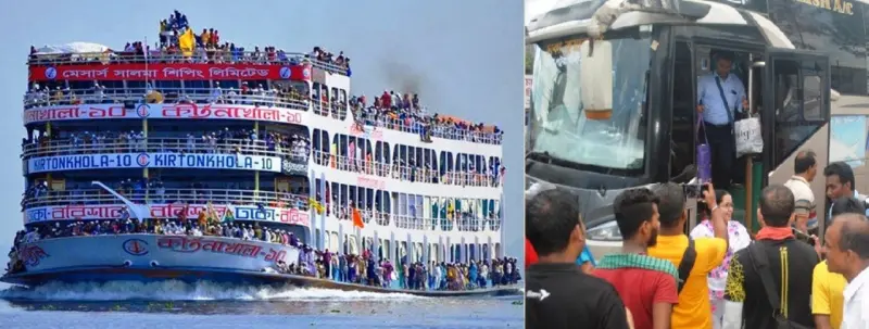 বরিশাল-ঢাকা নৌ রুটে এবারে ঈদ স্পেশাল সার্ভিস থাকছে না। যাত্রী সংকটে লোকসান এড়াতে মালিকরা যাত্রীদের ভীড় দেখার পর ঘাটে লঞ্চ আনবেন বলে জানিয়েছেন। এদিকে অধিকাংশ ব্র্যান্ড বাসের ঈদ সার্ভিসের অগ্রিম টিকিট বিক্রি প্রায় শেষের পথে বলে জানিয়েছেন। তবে টিকিট কালোবাজারি রোধে বাস মালিকরা কঠোর হুশিয়ারী দিয়েছেন। বরিশাল-ঢাকা নৌ রুটে ঈদের ১৫ দিন যেখানে উভয় প্রান্তে প্রতিদিন ২৮ থেকে ৩২টি লঞ্চ চলাচলের স্পেশাল সার্ভিস ঘোষণা করা হতো, এবারে তা থাকছে না।