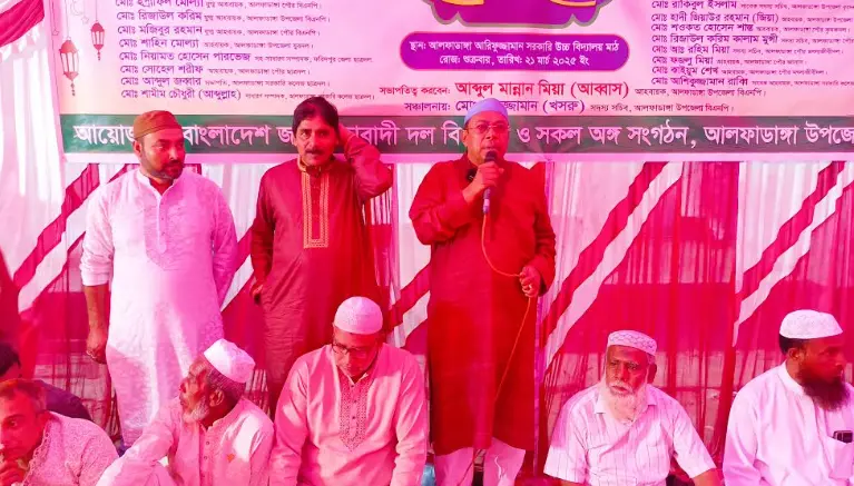 শুক্রবার (২১ মার্চ) সন্ধ্যায় আলফাডাঙ্গা উপজেলা সদরের আরিফুজ্জামান সরকারি উচ্চ বিদ্যালয়ের মাঠ প্রাঙ্গণে সাবেক প্রধানমন্ত্রী ও বিএনপির চেয়ারপার্সন বেগম খালেদা জিয়ার আশু রোগমুক্তি কামনায় এক দোয়া ও ইফতার মাহফিলে প্রধান অতিথির বক্তব্যে এসব কথা বলেন তিনি।
