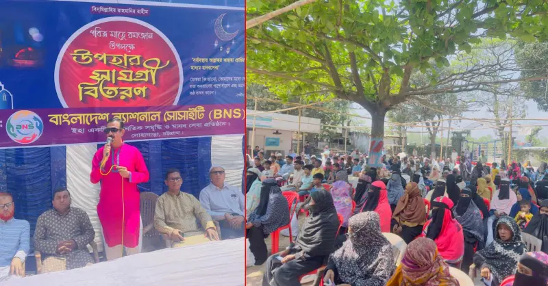 চট্টগ্রামের লোহাগাড়া উপজেলায় পবিত্র মাহে রমজান উপলক্ষে আল্লাহ’র সন্তুষ্ট লাভের আশায় ৫০০ হতদরিদ্র পরিবারের মাঝে ইফতার সামগ্রী বিতরণ করেছে লোহাগাড়ার সর্ববৃহৎ অর্থনৈতিক ও মানবিক সংগঠন বাংলাদেশ ন্যাশনাল সোসাইটি।