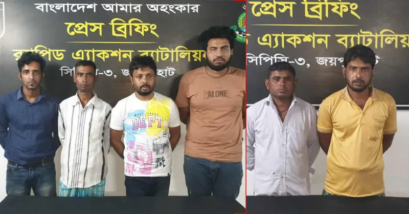 আটককৃতরা হলো, মোঃ মাতাব্বর হোসেন (৪৮), অপুদেব (২৯), রিপন পাল (৩৬), আনন্দ পাল (২১), শ্রী নিতাই চৌধুরী (৪২) এবং শরিফুল ইসলাম (৩৪)। এসময় মাদক পরিবহনের কাজে ব্যবহৃত ১টি প্রাইভেটকার এবং নগদ ৮৭,৯১০/- টাকা জব্দ করা হয়।