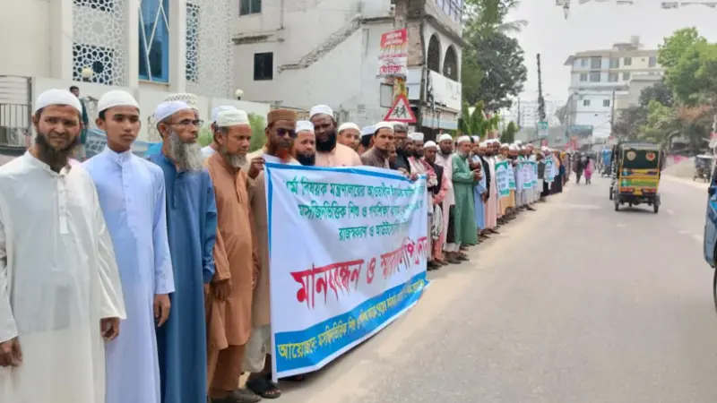 ইসলামিক ফাউন্ডেশন কর্তৃক বাস্তবায়নাধীন মসজিদভিত্তিক শিশু ও গণশিক্ষা কার্যক্রম (৭ম পর্যায়) প্রকল্পের জনবলকে রাজস্বকরণ ও আউটসোর্সিং বাতিলের দাবিতে মানববন্ধন অনুষ্ঠিত হয়েছে।