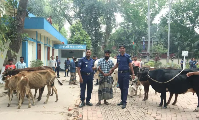 তিনি বলেন, গত ১৪ মার্চ গভীর রাতে আত্রাই থানার নৈদিঘী গ্রামের মো. মোরশেদ আলী শেখের বাড়ির গোয়ালঘর থেকে ৮টি গরু চুরি হয়। ঘটনার পর থেকেই জেলা পুলিশের একাধিক বিশেষ টিম অভিযান শুরু করে। তথ্যপ্রযুক্তির সহায়তায় গতকাল শনিবার (২২ মার্চ) আত্রাই থানা পুলিশ চুরির ঘটনায় সরাসরি জড়িত ছোটন প্রামাণিককে গ্রেপ্তার করে। প্রাথমিক জিজ্ঞাসাবাদে সে চুরির কথা স্বীকার করে এবং গরুগুলোর অবস্থান সম্পর্কে তথ্য দেয়।