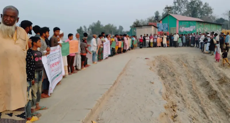 কুড়িগ্রামের উলিপুরে নদী খনন, নৌ বন্দর ও নৌ থানা স্থাপনসহ ৫ দফা দাবিতে মানববন্ধন অনুষ্ঠিত হয়েছে।