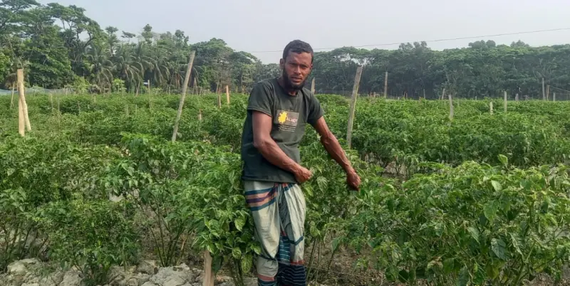 কৃষক আ. রহিম চরফ্যাশন উপজেলার জিন্নাগড় ইউনিয়নে উত্তর চর মাদ্রাজ গ্রামের ৫ নম্বর ওয়ার্ডের বাসিন্দা। সে বিভিন্ন ধরনের শস্য উৎপাদনের পাশাপাশি ছয় বছর আগে সীমিত পরিসরে বোম্বাই মরিচের চাষ শুরু করেন। মরিচ চাষে লাভবান হওয়ায় পর্যায়ক্রমে এর পরিধি বাড়িয়ে বর্তমানে চার একর জমিতে মরিচের চাষ করছেন। ২০২৩ সালে সামান্য লাভ হলেও ২০২৪ সালে চার একর জমিতে ১ লক্ষ টাকা ব্যয়ে বোম্বাই মরিচ চাষ করে ১৬ লক্ষ টাকা আয় করেছেন। তার ধারণা, এই বছর মরিচের ফলন ভালো হওয়ায় লাভের পরিমাণ বেড়ে ১০ লাখ টাকা ছাড়িয়ে যেতে পারে।