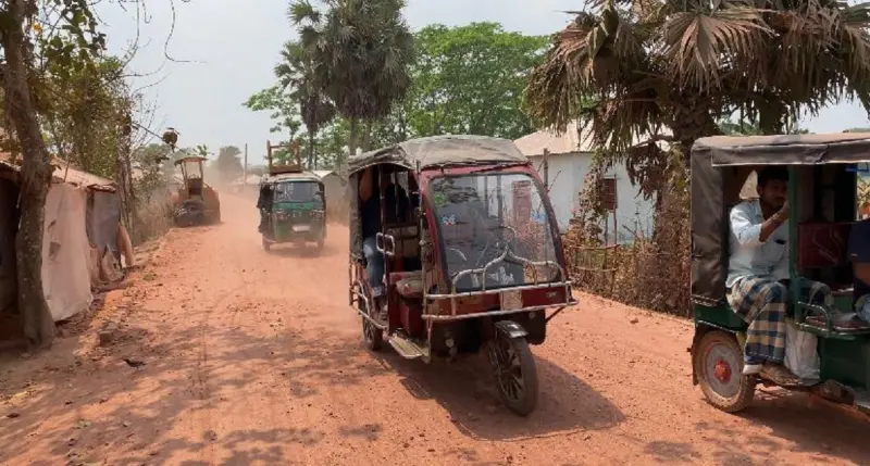 সরেজমিন দেখা যায়, ৬ কিলোমিটার রাস্তার পুরানো কার্পেট উঠিয়ে নতুন করে ইটের খোয়া দেয়া হয়েছে। সেই খোয়া এখন উঠে চলাচলের বাধা সৃষ্টি করছে। ব্যস্ততম এই সড়কে বালু জমে গেছে। এতে আটকা পড়ে কেউ গাড়ি ঠেলে তুলছেন বা কারো বালু মধ্যে পড়ে বেহাল অবস্থা হয়েছে। বালি আর ধুলামাখা পথ দিয়ে জীবনের ঝুঁকি নিয়েই চলছে মালবাহী পরিবহনসহ যাত্রীবহনকারী ছোট বড় পরিবহন। সড়কের পাশের সব গাছপালা ইতোমধ্যেই নষ্ট হয়ে গেছে। ঘর-বাড়িগুলো ধুলায় ঢাকা পড়েছে। সড়কের ধুলার কারণে একদিকে যেমন যান চলাচলের বিঘ্ন সৃষ্ট হচ্ছে। অন্যদিকে পরিবেশ ও স্বাস্থ্যগতভাবে নানা সমস্যা দেখা দিয়েছে সড়কের ধারে বসবাস করা স্থানীয়দের।