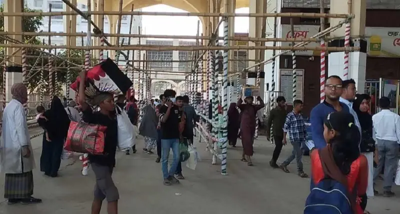 শুক্রবার (২৮ মার্চ) সকাল থেকেই কর্মজীবী মানুষজন রাজধানী ঢাকা ছাড়ছেন। কেউ বাস, কেউ ট্রেনে আবার অনেকেই ব্যক্তিগত যানবাহনে বাড়ি ফিরছেন।