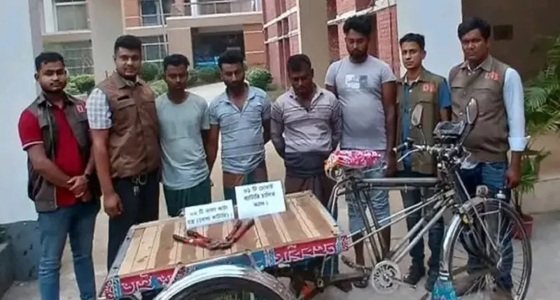 নড়াইলে ব্যাটারি চালিত ভ্যান চোর চক্রের চার সদস্যকে গ্রেফতার করেছে নড়াইল জেলা গোয়েন্দা শাখা (ডিবি) পুলিশ। এসময় ব্যাটারি চালিত একটি চোরাই ভ্যান ও ২টি তালা কাটার যন্ত্র (বোল্ড কাটার) লম্বা ১৪ ইঞ্চি উদ্ধার করা হয়।