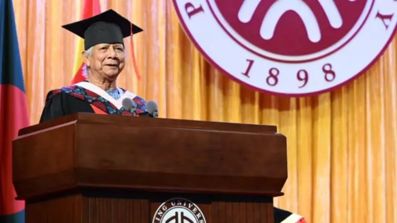 শনিবার (২৯ মার্চ) সকালে চীনের পিকিং বিশ্ববিদ্যালয়ে দেওয়া ভাষণে এসব কথা বলেন তিনি। এর আগে বিশ্ববিদ্যালয় কর্তৃপক্ষ প্রধান উপদেষ্টাকে সম্মানসূচক ডক্টরেট ডিগ্রি প্রদান করে।