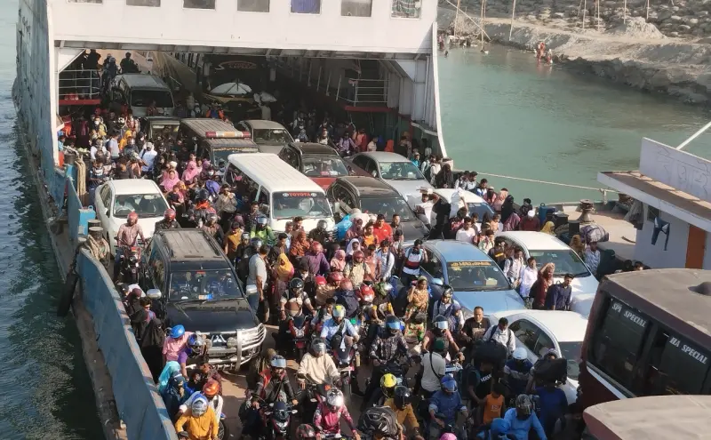 ঈদযাত্রায় রাজবাড়ীর গোয়ালন্দ উপজেলার দৌলতদিয়া ঘাটে ঘরমুখো যাত্রীদের উপচেপড়া ভীড় দেখা গেছে। তবে যাত্রীদের কাছ থেকে বাড়তি ভাড়া আদায়ের অভিযোগ রয়েছে।