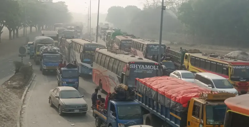 ঈদ যাত্রায় ঢাকা-টাঙ্গাইল-যমুনা সেতু মহাসড়কের যমুনা সেতুর ওপর একাধিক গাড়ি দুর্ঘটনা, বিকল এবং অতিরিক্ত যানবাহনের চাপে যমুনা সেতুপূর্ব পাড় থেকে এলেঙ্গা পর্যন্ত ১৪ কিলোমিটার এলাকায় থেমে থেমে যানজটের সৃষ্টি হয়েছে। রবিবার (৩০ মার্চ) মধ্যরাত থেকে এই যানজটের সৃষ্টি হয়।