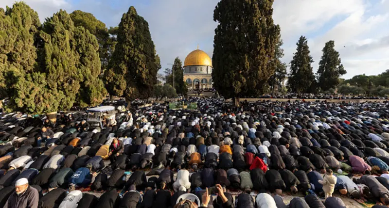 ইসরায়েলি নিষেধাজ্ঞা ও হামলার আশঙ্কা উপেক্ষা করে প্রায় ১ লাখ ২০ হাজার ফিলিস্তিনি মুসল্লি রবিবার (৩০ মার্চ) ঈদুল ফিতরের নামাজ আদায় করেছেন। স্বাভাবিকভাবেই এত বিপুল সংখ্যক মুসল্লির জায়গা হয়নি মসজিদে, তাই মসজিদ প্রাঙ্গণের বাইরেও অসংখ্য মুসল্লি নামাজ পড়তে বাধ্য হন। গত বছর আল-আকসায় ৪০ হাজার ফিলিস্তিনি ঈদের নামাজ আদায় করেছিলেন।