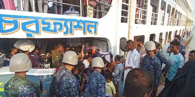 রবিবার (৩০ মার্চ) বিকালে ঢাকা থেকে বেতুয়াগামী যাত্রীবাহী লঞ্চে বাড়ি ফেরা মানুষের নিরাপত্তা দিতে যাত্রীদের পাশে দাড়ালেন নৌ-বাহিনীসহ চরফ্যাশন থানা পুলিশ যৌথবাহিনীর একটি টিম।