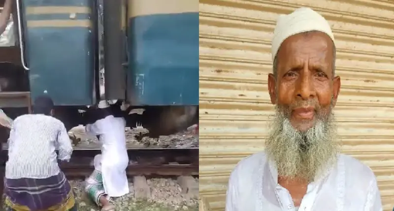 গাজীপুরের শ্রীপুরের সাতখামাইর স্টেশন থেকে পান কিনে রেললাইনের পাশের রাস্তা ধরে বাড়ি ফিরছিলেন মোহাম্মদ শাহাবুদ্দিন (৬৭)। পাশে রেললাইনে দাঁড়ানো মহুয়া ট্রেনে হইচই শুনে এগিয়ে গিয়ে দেখেন বগিতে আগুন। হাতের পান ফেলে দৌড়ে কাছে যান তিনি।