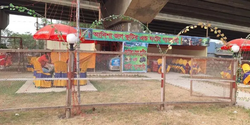 জানা যায়, মির্জাপুর উপজেলার ধেরুয়া রেল ক্রসিংয়ের পূর্ব পাশে মহাসড়কের দক্ষিণ পাশে জালাল উদ্দিন নামে এক ব্যক্তির আনিশা জল কুটির নামে একটি ফাস্টফুডের দোকান রয়েছে। এবার ঈদের আগের দিন থেকে ওই ফাস্টফুডের দোকানের উল্টো পাশে সড়ক ও জনপথ বিভাগের জায়গায় উড়াল সেতুর নিচে নির্মিত স্থাপনায় তিনি আরেকটি ব্যবসা প্রতিষ্ঠান খুলেছেন। ব্যবসা প্রতিষ্ঠানটির জন্য লম্বা আকারের ঘর তৈরি করা হয়েছে। চিকন লোহার তৈরি জাল দিয়ে চারপাশে বেড়া দেয়া হয়েছে। সেখানে দোকান থেকে ইচ্ছেমত খাবার খাচ্ছেন ঈদের ছুটিতে ঘুরতে আসা লোকজন। প্রতিদিন দুপুরের পর থেকে ভীড় বাড়তে থাকে। সন্ধার পর প্রচুর লোক সমাগম হয় এবং রাত ১০ থেক ১১ টা পর্যন্ত চলে।