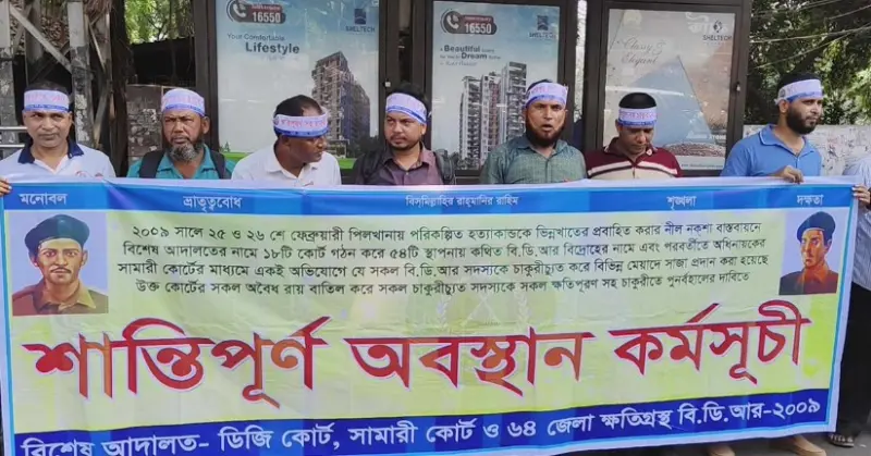 পিলখানা হত্যাকাণ্ড ঘিরে চাকরিচ্যুত বিডিআর সদস্যদের ক্ষতিপূরণসহ চাকরিতে পুনর্বহালের দাবিতে অবস্থান নিয়েছেন ভুক্তভোগী ও তাদের পরিবার। এ পরিস্থিতিতে পিলখানার সামনে জিগাতলা বিজিবি ৪ নং গেট এলাকায় নিরাপত্তা জোরদার করা হয়েছে।