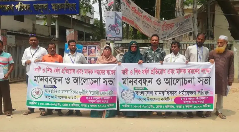 নারী ও শিশুর প্রতি যৌন সহিংসতা প্রতিরোধ এবং মাদকমুক্ত সমাজ গঠনের দাবিতে ভালুকা উপজেলায় মানববন্ধন ও আলোচনা সভার আয়োজন করা হয়েছে।