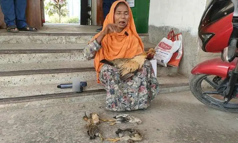 ৫টি মৃত মুরগী নিয়ে থানায় হাজির হয়ে বিচার চেয়েছেন অবস্থান নেন রাশিদা বেগম (৫৫) নামে এক বৃদ্ধ নারী।