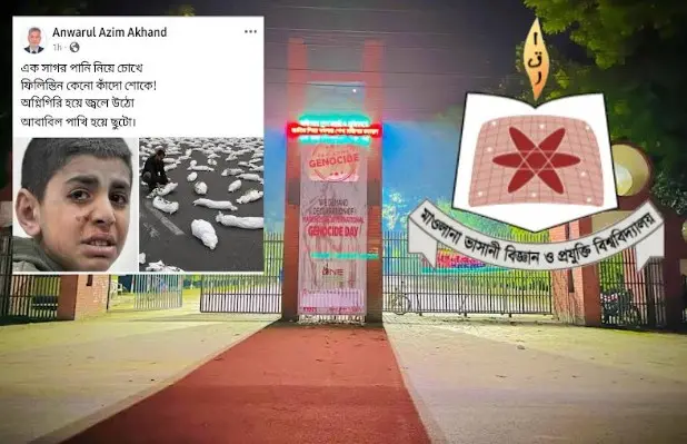 বিশ্বব্যাপী আয়োজিত ‘গ্লোবাল স্ট্রাইক ফর গাজা’ কর্মসূচির প্রতি সংহতি প্রকাশ করেছেন মাওলানা ভাসানী বিজ্ঞান ও প্রযুক্তি বিশ্ববিদ্যালয় পরিবারের পক্ষ থেকে বিশ্ববিদ্যালয়টির উপাচার্য অধ্যাপক ড. মো. আনোয়ারুল আজীম আখন্দ।