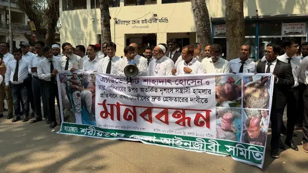 এই ঘটনার প্রতিবাদে সোমবার (৭ এপ্রিল) শরীয়তপুর জেলা আইনজীবী সমিতির সামনে ঘণ্টাব্যাপী মানববন্ধন কর্মসূচি পালন করেছেন জেলার কর্মরত আইনজীবীরা।