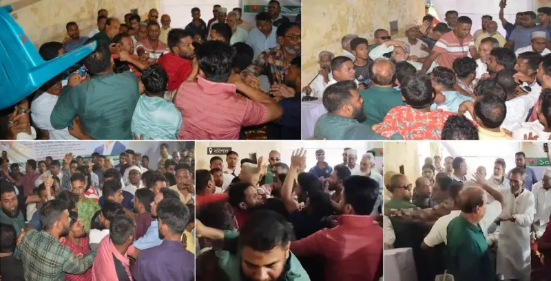 বরিশালে তুচ্ছ ঘটনার জেরে জ্যেষ্ঠ নেতাদের সামনে ১০ নম্বর ওয়ার্ড বিএনপির কর্মী সম্মেলনে যুবদল কর্মী মিজানুর রহমান ও ১০ নং ওয়ার্ড বিএনপি নেতা কামরুলের কর্মীদের সাথে হাতাহাতির ঘটনা ঘটে।