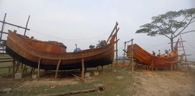 বৃহস্পতিবার (১০ এপ্রিল) দুপুরে উপজেলার বেতুয়া, নতুন স্লুইজ, সামরাজ ও খেজুর গাছিয়ার মৎস্যঘাট এলাকা ঘুরে দেখা যায়, নতুন ট্রলার তৈরির পাশাপাশি পুরাতন ট্রলার মেরামতের কাজ চলছে পুরোদমে। বেতুয়া মৎস্যঘাট থেকে সামরাজ মৎস্যঘাট পর্যন্ত বেড়িবাঁধের ঢালে প্রায় শতাধিক ট্রলার তৈরি হচ্ছে। নির্মাণাধীন এসব ট্রলার মেরামতের কাজে নিয়োজিত রয়েছেন কাঠমিস্ত্রী ও তাদের সহযোগীরা। তারা কেউ কাঠ মসৃণ করছেন, কেউবা কাঠ জোড়া লাগানোর কাজ করছেন।