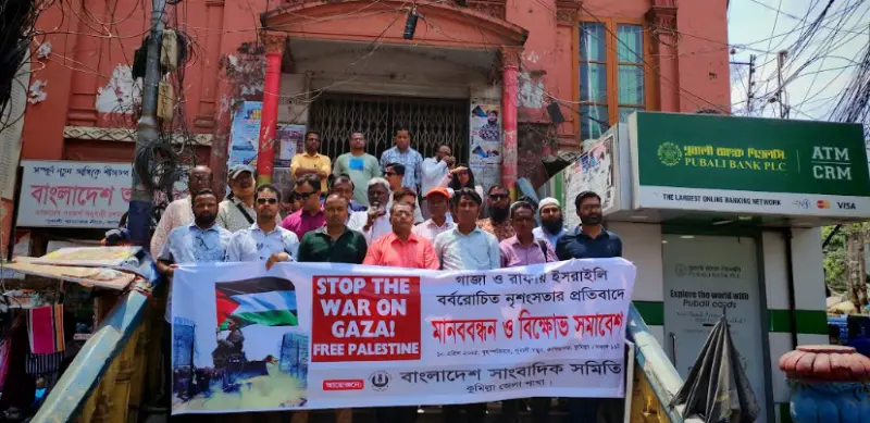 ফিলিস্তিনের গাজা ও রাফায় নির্বিচারে নিরীহ মুসলিদের উপর হামলা চালাচ্ছে দখলদার ইজরাইলী বাহিনী। তাদের এই হামলা থেকে বাঁচতে পারছে না নিষ্পাপ শিশু ও নারীরাও। এর প্রতিবাদে বাংলাদেশ সাংবাদিক সমিতি কুমিল্লা জেলা শাখার উদ্যোগে বিক্ষোভ সমাবেশ ও মানববন্ধন অনুষ্ঠিত হয়।