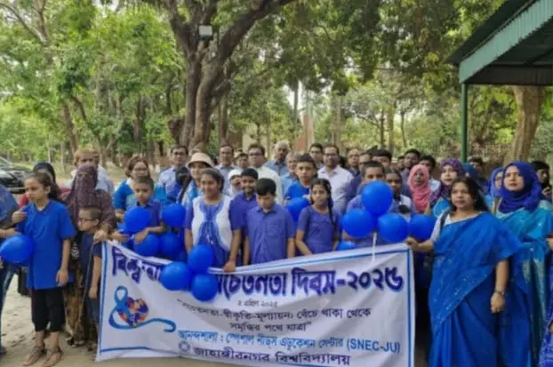 জাহাঙ্গীরনগর বিশ্ববিদ্যালয়ে (জাবি) প্রতিষ্ঠিত ‘আনন্দশালা: স্পেশাল নীড্স এডুকেশন সেন্টার (এসএনইসি-জেইউ)’ এর আয়োজনে বিশ্ব অটিজম সচেতনতা শোভাযাত্রা ও আলোচনা সভা অনুষ্ঠিত হয়েছে।