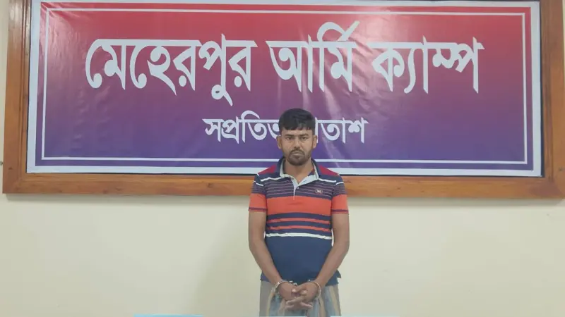 শুক্রবার (১১ এপ্রিল) সকাল সাড়ে ৬টার দিকে ২৭ ফিল্ড রেজিমেন্ট আর্টিলারি মেহেরপুর আর্মি ক্যাম্পের ক্যাপ্টেন রওশন আলম ও লে: মিনহাজের নেতৃত্বে উপজেলার কাথুলী ইউনিয়নের লক্ষীনারায়নপুর ধলা গ্রামে অভিযান চালিয়ে তাকে আটক করা হয়।