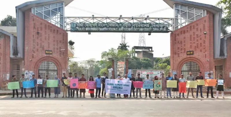 হাজী মোহাম্মদ দানেশ বিজ্ঞান ও প্রযুক্তি বিশ্ববিদ্যালয়ে (হাবিপ্রবি) জলবায়ু সুরক্ষা,নবায়নযোগ্য শক্তির সম্প্রসারণ ও টেকসই কৃষিতে বিনিয়োগ বাড়ানোর দাবিতে ‘গ্লোবাল ক্লাইমেট স্ট্রাইক’ কর্মসূচি পালন করা হয়েছে।