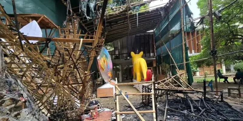 এর আগে ভোর সাড়ে ৪টার দিকে চারুকলা অনুষদে পহেলা বৈশাখের আনন্দ শোভাযাত্রার জন্য তৈরি করা ফ্যাসিস্টের মুখাকৃতি আগুনে পুড়ে ছাই এবং আরেকটি মোটিফ শান্তির পায়রা আংশিক পুড়ে যাওয়ার ঘটনা ঘটে। পরে এ ঘটনায় শাহবাগ থানায় জিডি করে বিশ্ববিদ্যালয় কর্তৃপক্ষ।