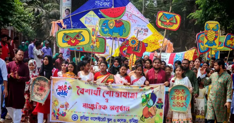 সুখ, শান্তি ও সফলতায় ভরে উঠুক জীবনের প্রতিটি অধ্যায়, এই শ্লোগানকে সামনে রেখে কুমিল্লায় জাঁকজমকভাবে পহেলা বৈশাখের বর্ষবরণ আনন্দ শোভাযাত্রা অনুষ্ঠিত হয়েছে।