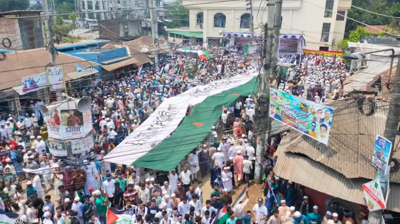 ফিলিস্তিন মুসলিম গনহত্যা বন্ধ ও স্বাধীন ফিলিস্তিন রাষ্ট্র প্রতিষ্ঠার দাবীতে প্যালেস্টাইন সলিডটরি মুভমেন্টের আয়োজনে "মার্চ ফর প্যালেস্টাইন" অনুষ্ঠিত হয়েছে। এতে অংশ নিয়েছেন ভোলার হাজার হাজার তৌহিদি জনতা।