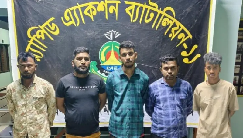 আটককৃতরা হলেন- মো. আমির, মো. আকবর হোসেন, মো. জিয়ান, মো. আরিফ, হানিফ হোসেন।