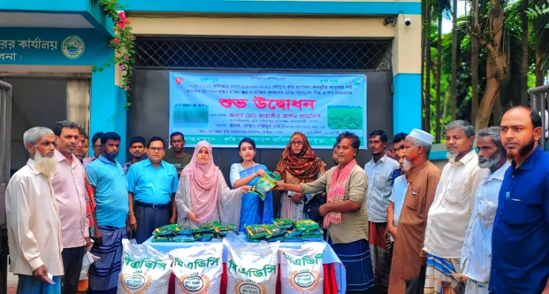 ২০২৪-২৫ অর্থবছরে খরিপ-১ ২০২৫-২০২৬ মৌসুমে কৃষি প্রণোদনা কর্মসূচির আওতায় পাবনার ভাঙ্গুড়ায় পাট ফসলের উৎপাদন বৃদ্ধির লক্ষ্যে ক্ষুদ্র ও প্রান্তিক কৃষকদের মাঝে বিনামূল্যে পাট বীজ ও সার বিতরণ কার্যক্রমের উদ্বোধন করা হয়েছে।