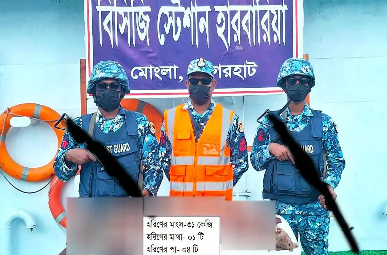 মোংলায় অভিযান চালিয়ে ৩১ কেজি হরিণের মাংস, ১টি মাথা ও ৪টি পা জব্দ করেছে কোস্টগার্ড।