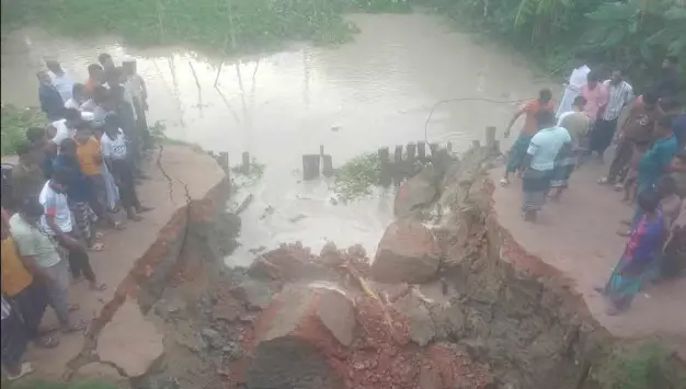 রাজবাড়ীর পাংশায় পানির স্রোতে ভেঙে গেছে একটি নির্মাণাধীন সেতুর ডাইভারশন রোড।