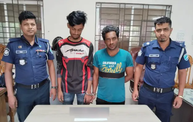 গ্রেপ্তাররা হলো- সিদ্ধিরগঞ্জের মিজমিজি পাইনাদী তেরামার্কেট এলাকার ইসমাঈল হোসেনের ছেলে রফিকুল ইসলাম (৩৪) ও পূর্বপাড়ার আমিনুল ইসলামের ছেলে সালামান (২৪)।