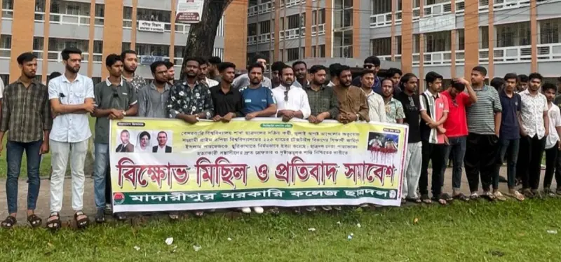 সোমবার (২১ এপ্রিল) দুপুরে মাদারীপুর সরকারি কলেজ মাঠে কলেজ ছাত্রদলের উদ্যোগে মানববন্ধন ও প্রতিবাদ সমাবেশ অনুষ্ঠিত হয়েছে।