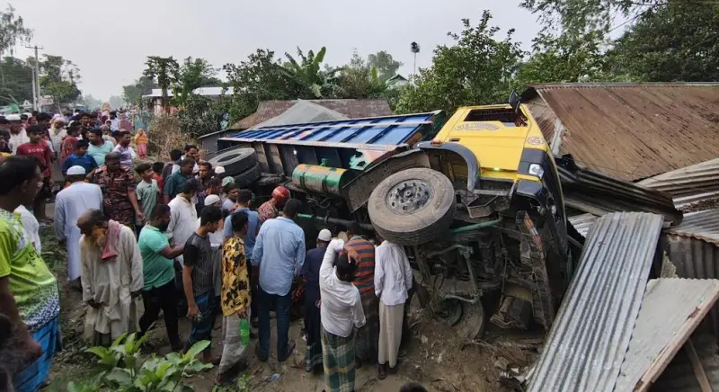 টাঙ্গাইলের ভূঞাপুরে পাথরবোঝাই একটি ট্রাক নিয়ন্ত্রণ হারিয়ে সড়কের পাশে থাকা একটি বসতঘরে ঢুকে পড়ে। দুর্ঘটনার সময় ট্রাকটি উল্টে গিয়ে ঘরে ঘুমিয়ে থাকা এক নারী চাপা পড়ে ঘটনাস্থলেই মারা গেছেন।
