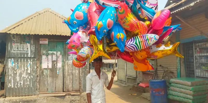 এক বছর ধরে গ্যাসভর্তি বেলুন বিক্রি করছেন কিশোরগঞ্জ জেলার পাকুন্দিয়া উপজেলার পুলের ঘাট গ্রামের রাহুল (২২)। তার গ্রামে কোনো সহায়-সম্বল না থাকলেও, বেলুন বিক্রির মাধ্যমে তার পরিবারে এসেছে স্বচ্ছলতা। বর্তমানে রাহুল, তার বাবা-মা, দুই ভাই এবং এক বোনসহ পাঁচ সদস্যের সংসার চালাচ্ছেন।