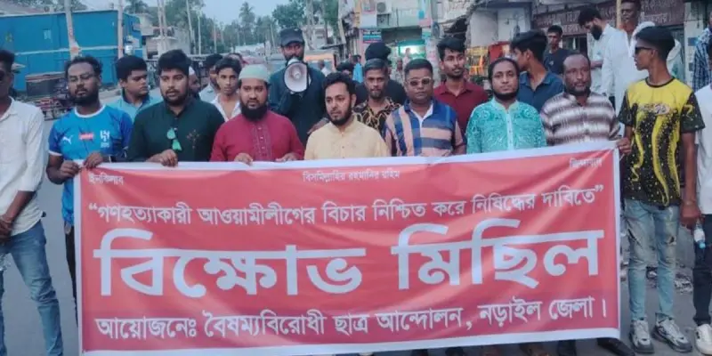 গণহত্যাকারী আওয়ামীলীগের বিচার নিশ্চিত করে আওয়ামীলীগকে নিষিদ্ধের দাবিতে নড়াইলে বৈষম্যবিরোধী ছাত্র আন্দোলনের বিক্ষোভ মিছিল অনুষ্ঠিত হয়েছে।