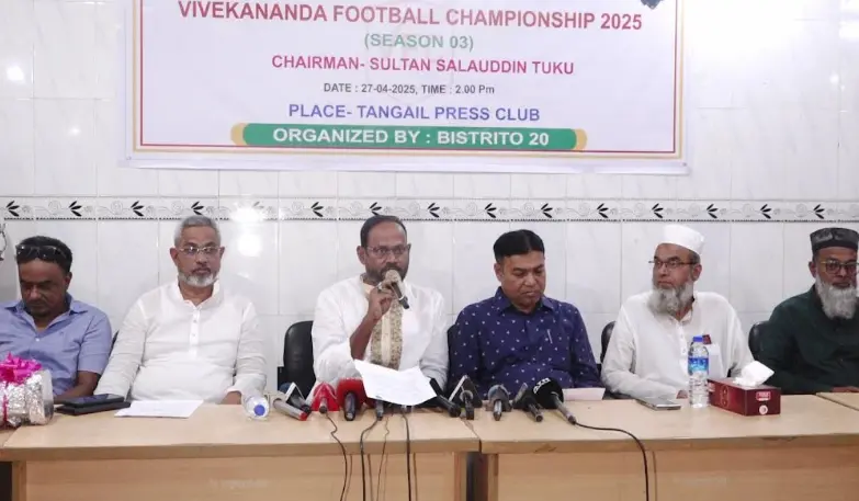 রোববার (২৭ এপ্রিল) দুপুরে টাঙ্গাইল প্রেসক্লাবের অডিটোরিয়ামে বিবেকানন্দ ফুটবল চ্যাম্পিয়নশিপ উপলক্ষে এক সংবাদ সম্মেলনে সাংবাদিকদের প্রশ্নের জবাবে তিনি এসব কথা বলেন।