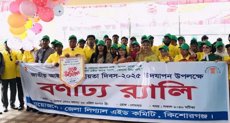 ‘দ্বন্দ্বে কোনো আনন্দ নাই, আপস করো ভাই, লিগ্যাল এইড আছে পাশে, কোনো চিন্তা নাই’— এই প্রতিপাদ্যকে সামনে রেখে কিশোরগঞ্জে জাতীয় আইনগত সহায়তা দিবস উদযাপিত হয়েছে।