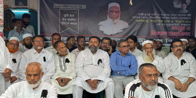 গাজীপুরের সিটি করপোরেশনের সাবেক মেয়র ও সাবেক মন্ত্রী আলহাজ্ব অধ্যাপক এম. এ মান্নানের ৩য় মৃত্যুবার্ষিকী উপলক্ষে গাজীপুর মহানগর বিএনপি ও অঙ্গ সংগঠনের উদ্যোগে মিলাদ ও দোয়া মাহফিল অনুষ্ঠিত হয়েছে।