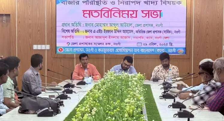 নওগাঁয় জেলা প্রশাসন ও কনজুমারস এসোসিয়েশন অব বাংলাদেশ জেলা শাখার আয়োজনে বাজার পরিস্থিতি ও নিরাপদ খাদ্য বিষয়ক মতবিনিময় সভা অনুষ্ঠিত হয়েছে।