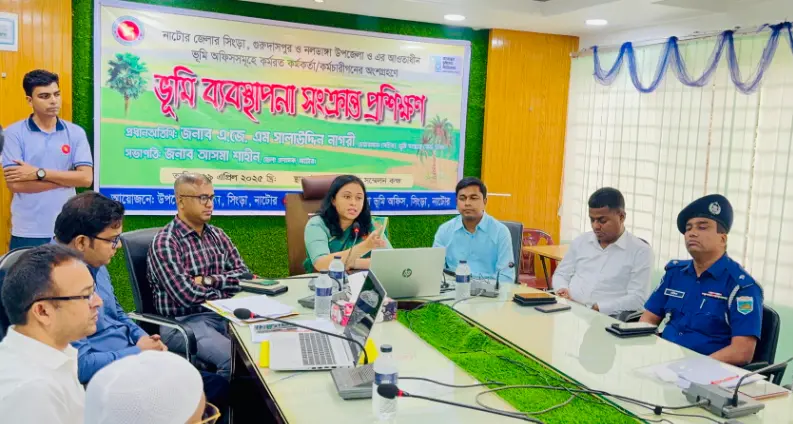 নাটোর জেলার সিংড়া, গুরুদাসপুর ও নলডাঙ্গা উপজেলার আওতাধীন ভূমি অফিসসমূহে কর্মরত কর্মকর্তা কর্মচারীদের অংশগ্রহণে ভূমি ব্যবস্থাপনা সংক্রান্ত প্রশিক্ষণ কর্মশালা অনুষ্ঠিত হয়েছে।