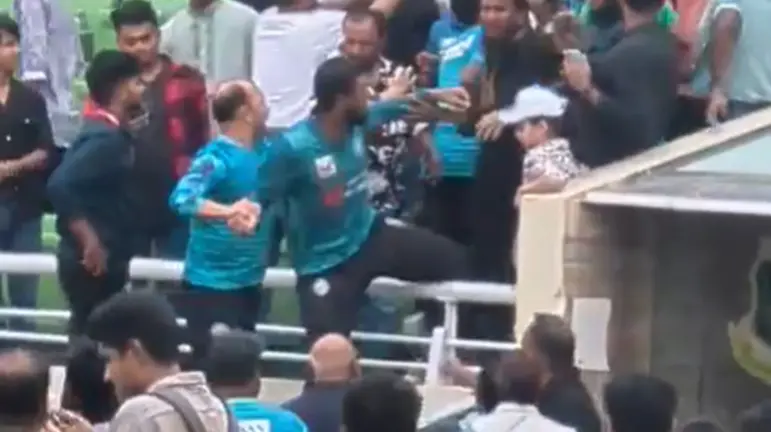 ঘটনাটি মুহূর্তেই সবার নজরে আসে। সতীর্থরা তৎপর হয়ে তাকে শান্ত করেন এবং মাঠে ফিরিয়ে আনেন। এর মধ্যেই গ্যালারিতে শুরু হয় হট্টগোল। কয়েক মিনিট ধরে চলা বিশৃঙ্খলার পর পরিস্থিতি নিয়ন্ত্রণে আসে।