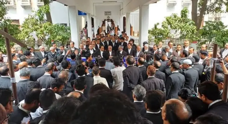 মঙ্গলবার (২৯ এপ্রিল) দুপুরে সুপ্রিম কোর্ট আইনজীবী সমিতি ভবনের সামনে এ বিক্ষোভ সমাবেশ অনুষ্ঠিত হয়। জাতীয়তাবাদী আইনজীবী ফোরাম বিক্ষোভের আয়োজন করে।